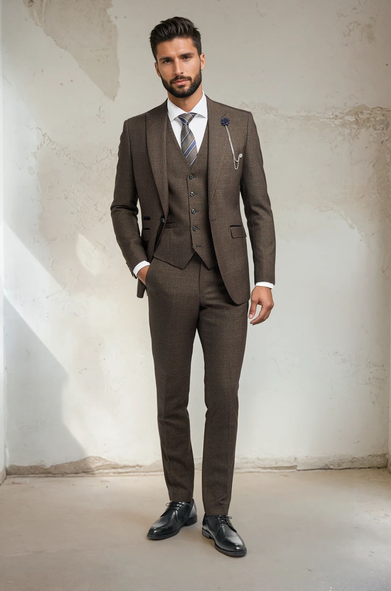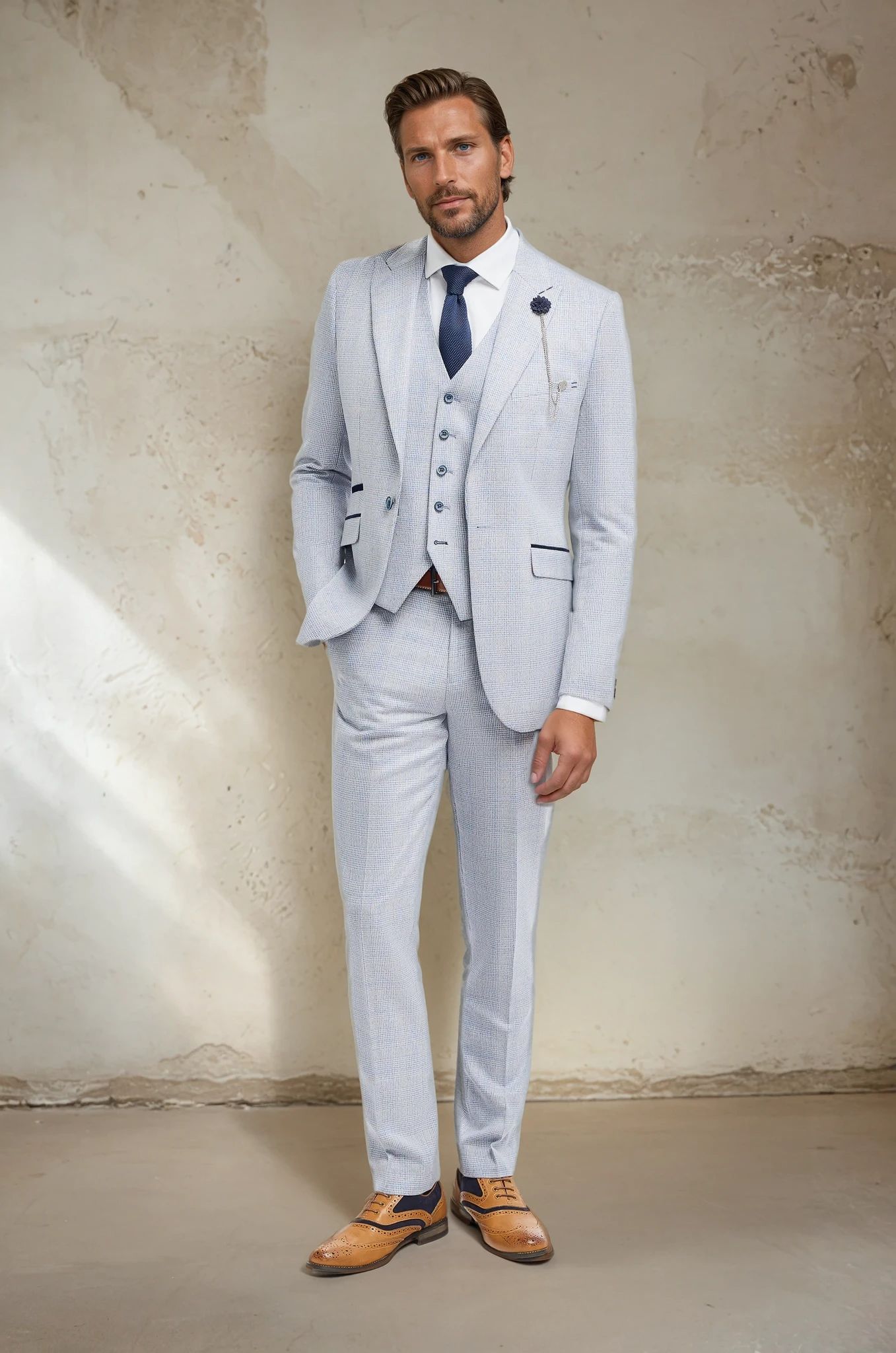 Elevate your occasion wear with the Cavani Caridi, a suit that offers endless styling possibilities. Available in Navy, Beige, Olive, Brown, Wine, Sage and Sky, this collection is designed for the modern gentleman who values individuality.